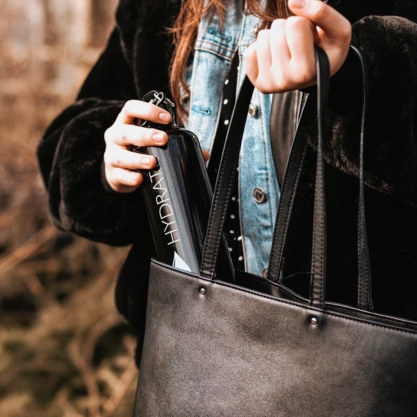 Bidon aluminiowy o pojemności 800 ml, błyszczącej powierzchni, z karabińczykiem. Posiada szczelne zamknięcie typu leak proof zapobiegające wyciekaniu płynów. Nie zawiera BPA.