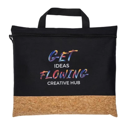 Teczka na dokumenty w formacie A4 zapinana na zamek, z korkowym spodem.